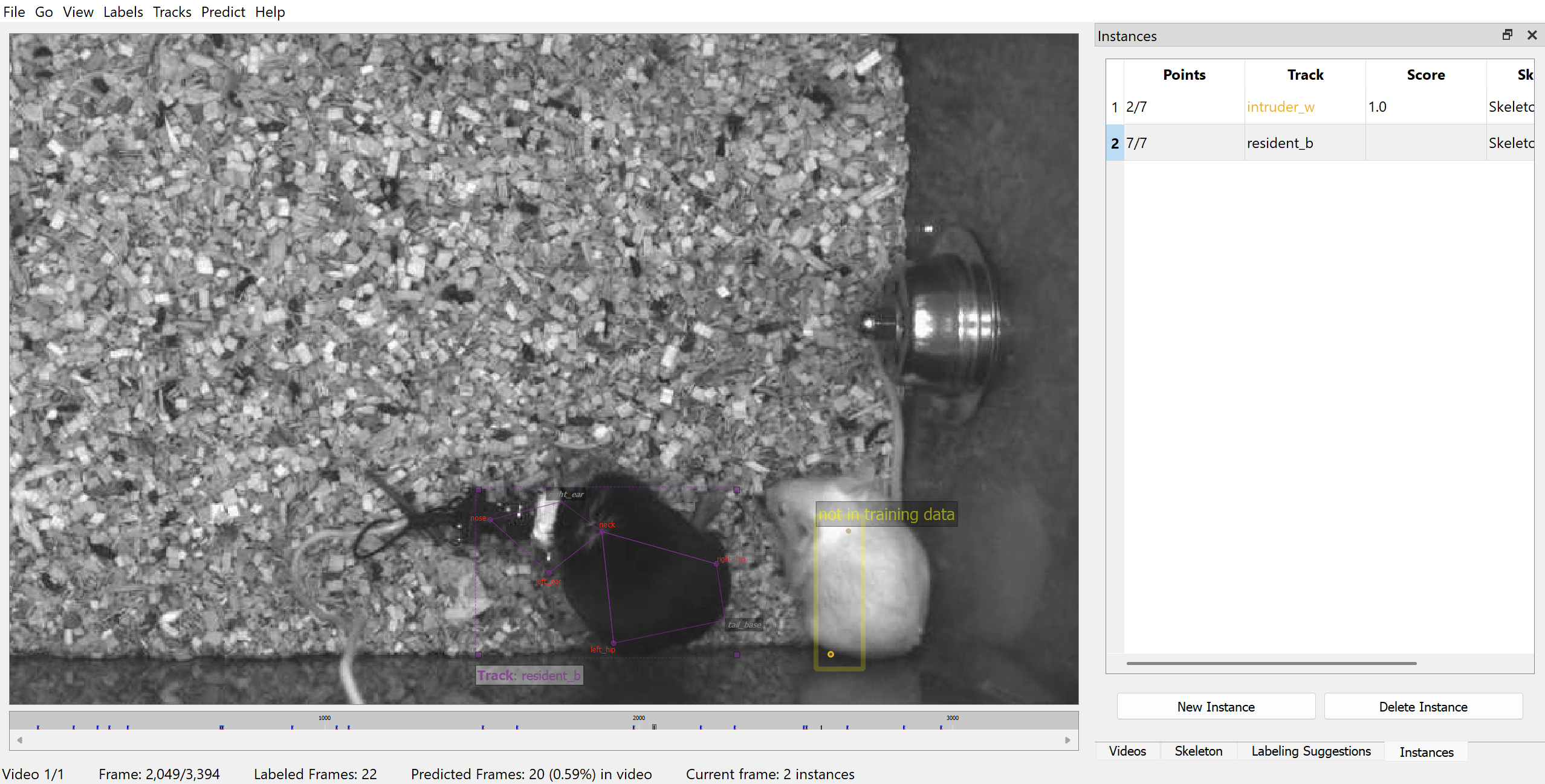 For tracking the identities of the mice, we will also assign identities to each instance by adding a Track. This step is optional if you are only tracking a single animal or if the animals are visually indistinguishable.