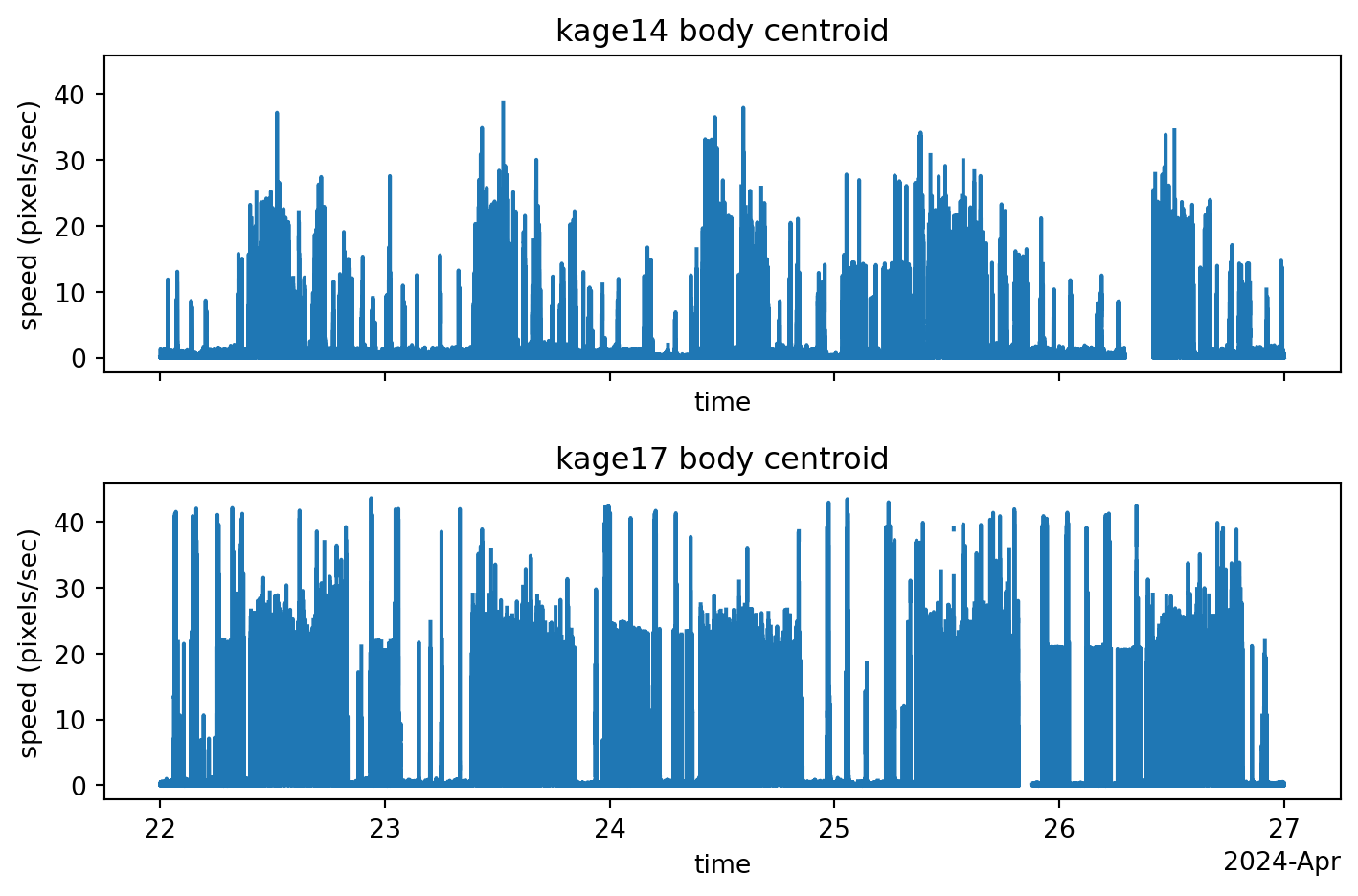 In this case study, we’ll be using the movement package to dive into mouse home cage monitoring data acquired in Smart-Kages and tracked with DeepLabCut. We’ll explore how mouse activity levels fluctuate throughout the day.